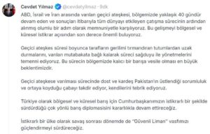 Cumhurbaşkanı Yardımcısı Cevdet Yılmaz, ABD, İsrail ve İran arasındaki geçici ateşkeşi olumlu bir gelişme olarak değerlendirdi. Yılmaz,...