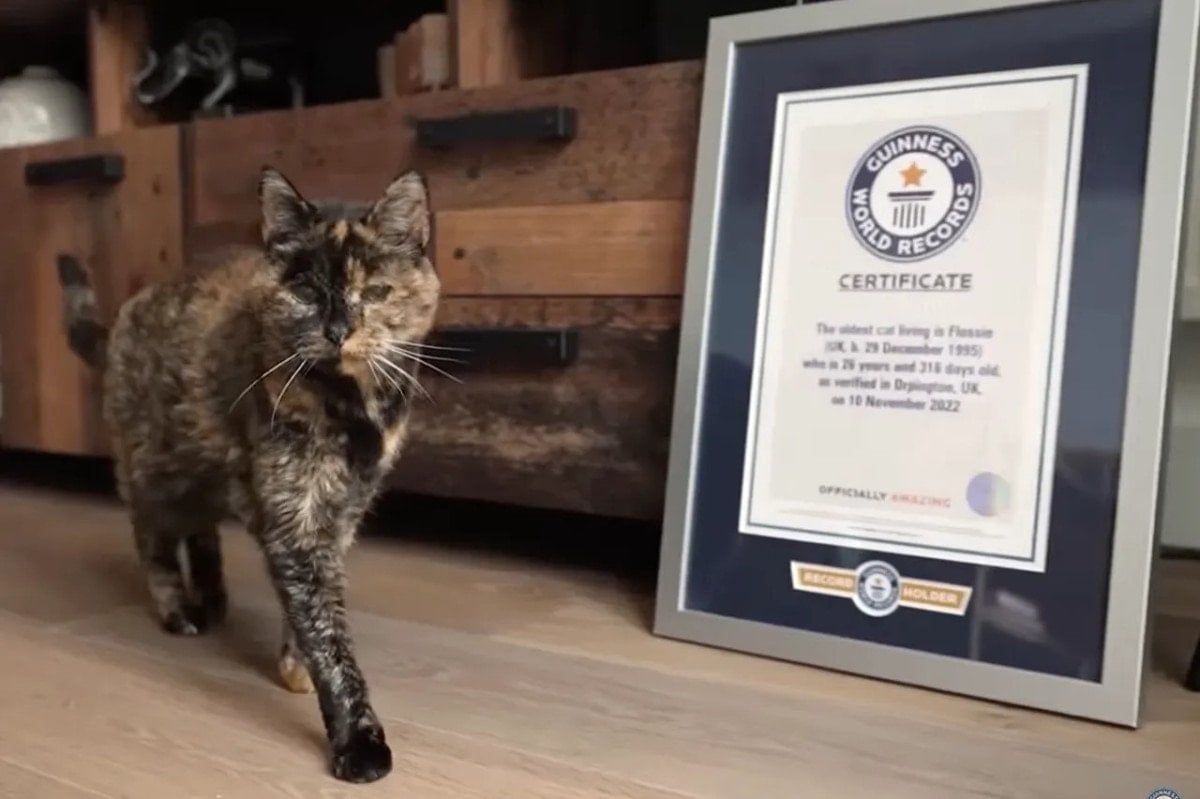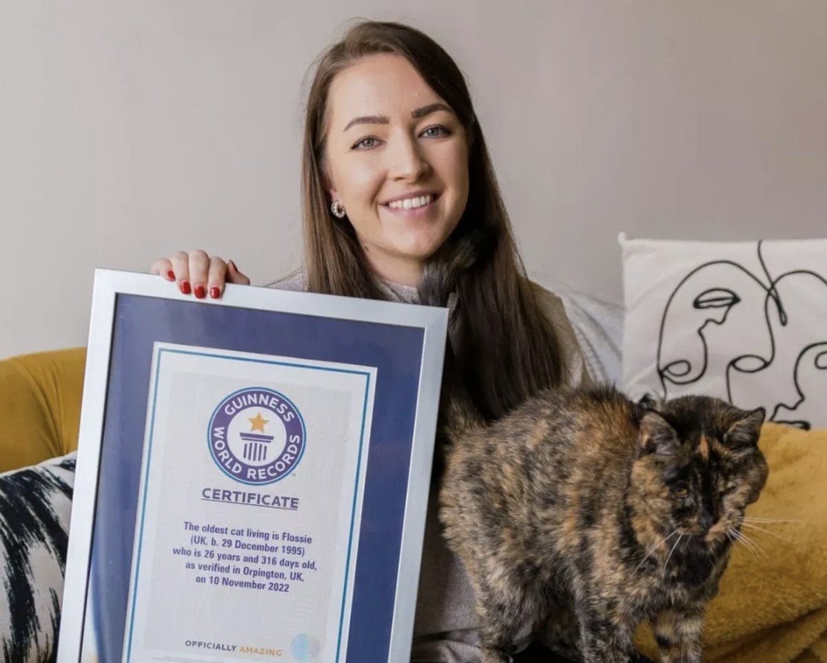 1995 doğumlu Flossie, 29 Aralık’ta 30 yaşına girerek Guinness Rekorlar Kitabı’na “yaşayan en yaşlı kedi” olarak girdi. Flossie, yaşlı bir kedi sahiplenmek isteyen Vicki Green tarafından bir süre önce sahiplenildi. Aynı yaşta olan diğer kediler arasında dünyanın en yaşlı kedisi olabileceği düşünülen Flossie için veteriner kayıtları incelendi ve doğum tarihi 29 Aralık 1995 olarak doğrulandı.